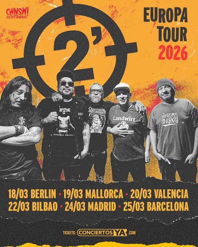 Uno de los emblemas del punk rock albiceleste, como son los muchachos de 2 Minutos, están muy cerca de regresar al viejo continente, para sacudir los escenarios de esta región a ritmo de punk rock melódico, directo y urbano.