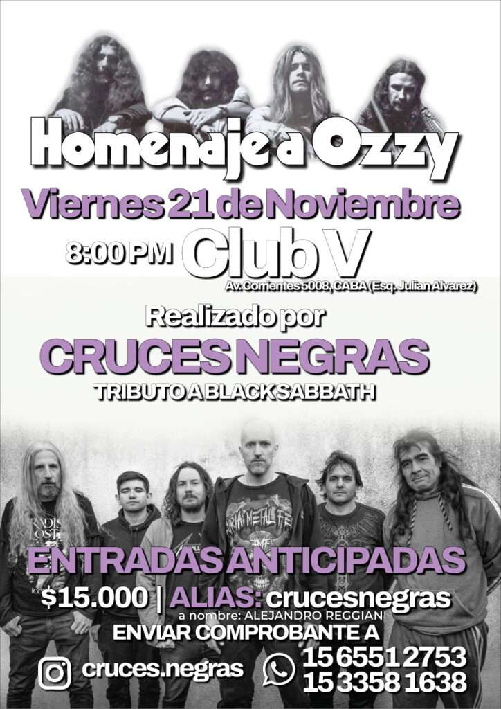 En una ocasión tuvimos la oportunidad de conversar con los integrantes de Cruces Negras, la banda tributo a Black Sabbath, quienes se presentarán este viernes 21 de noviembre en Club V con su espectáculo “Homenaje a Ozzy Osbourne”. El show llega tras su última aparición el 7 de julio de 2025 y luego del fallecimiento de Ozzy, ocurrido el 22 del mismo mes, hecho que marcó profundamente al mundo metalero.