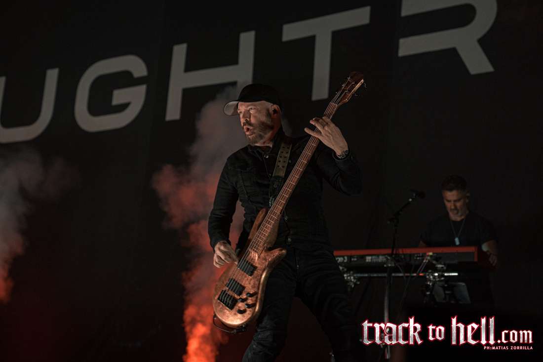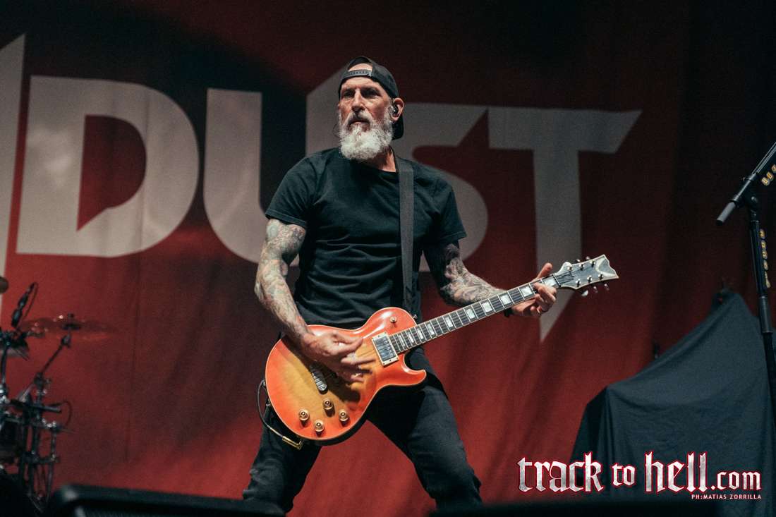 Las capacidades técnicas de Mark Tremonti tampoco pasaron desapercibidas. Sus riffs, coros de acompañamiento y su desempeño cantando y tocando simultáneamente en “Burn It Down” fueron algunos de los puntos más altos de la noche. Todo esto estuvo respaldado por un trabajo sólido y preciso en la batería, sosteniendo cada complejidad rítmica a lo largo de un setlist de 17 canciones que inundó el recinto de platillos y doble pedal.