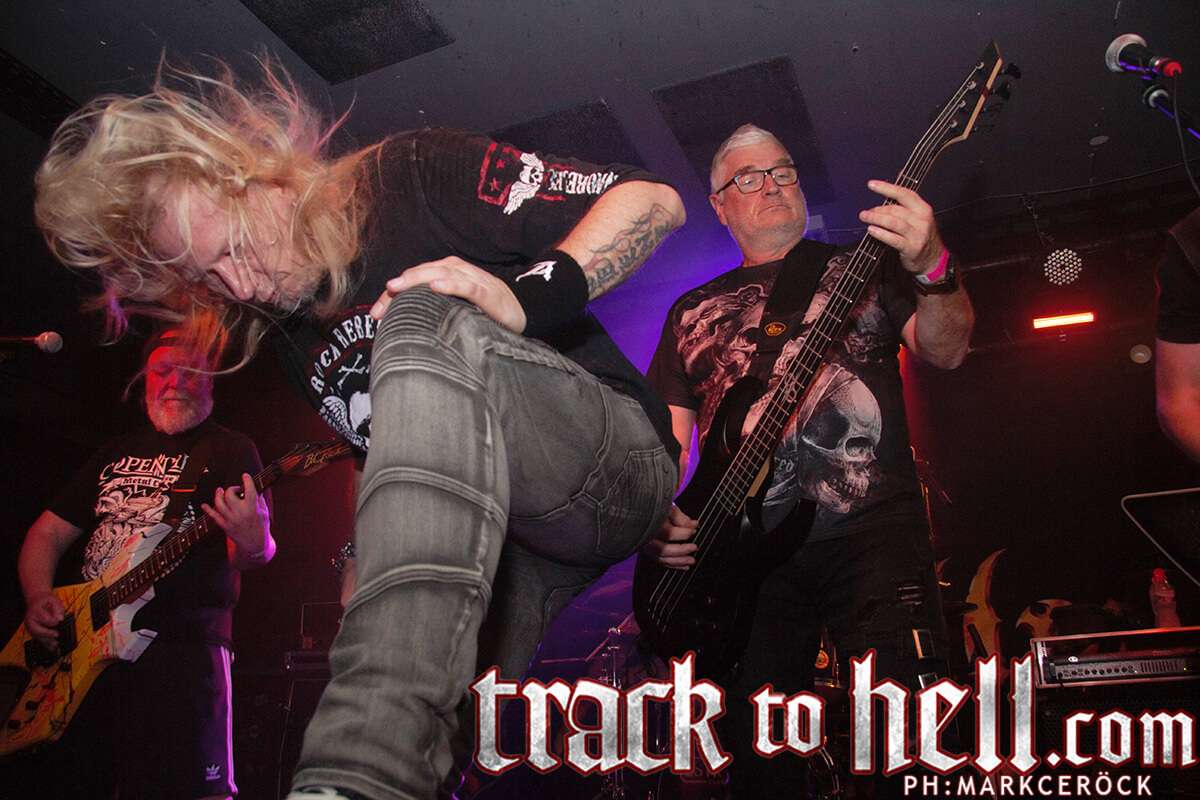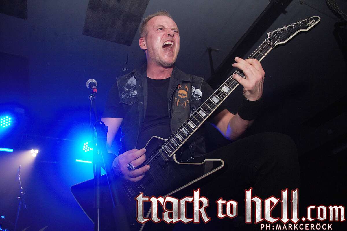 “The Eternal War” llega como un vendaval; el público se transforma en una marea de cuerpos que se agitan al ritmo del bajo y la batería, un mar furioso donde cada ola es un grito. La conexión entre la banda y los asistentes es total: el escenario y la pista se funden en una sola entidad hecha de sudor y metal. Los daneses repasan su historia con la precisión de un reloj suizo y la pasión de unos adolescentes con hambre. “By Inheritance” estalla y la sala entera vibra; es más que una canción, es una invocación al pasado, una reverencia al thrash que los vio nacer. “Turn up the Rage” prende fuego a los amplis, y los riffs suenan como cuchillas girando en el aire, limpios, veloces, implacables.