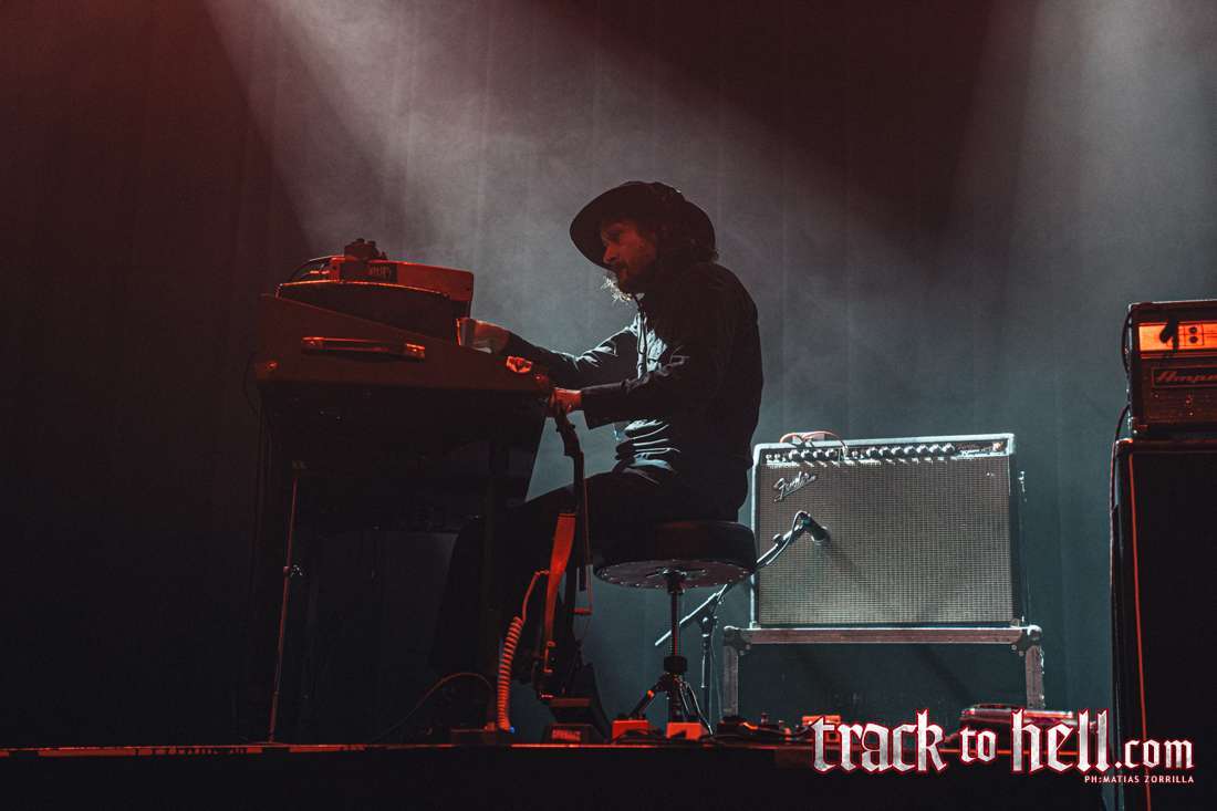 Ver a All Them Witches en vivo es presenciar un equilibrio perfecto entre lo espiritual y lo terrenal. Charles Michael Parks Jr., con su bajo y voz profunda, sostiene el eje emocional del grupo; Ben McLeod despliega la guitarra con precisión quirúrgica, entre lo sucio y lo etéreo; y la batería parece guiar un ritual, marcando tiempos que no pertenecen a un simple compás, sino a un estado mental. En medio de esas corrientes, el tecladista y violinista Allan Van Cleave se mueve con libertad absoluta, aportando atmósferas, melodías y matices que elevan cada tema. Sus solos, ya sea desde el teclado, el Rhodes o el violín, abren grietas de luz dentro de la densidad, momentos de pura emoción que convierten cada canción en una experiencia distinta. Es él quien a veces da ese toque cinematográfico, ese respiro místico que transforma la distorsión en algo casi poético.