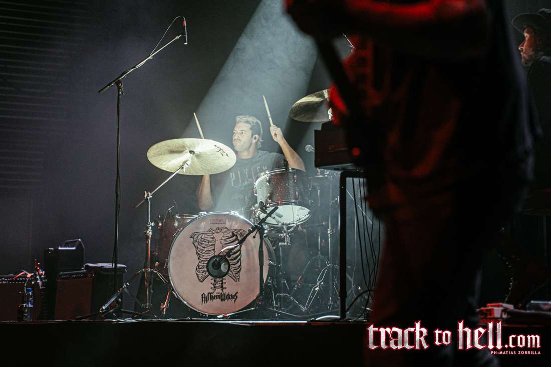 Y cuando el eco del último acorde se desvaneció, el escenario quedó preparado para el viaje más introspectivo de la noche. All Them Witches tomó el relevo con su mezcla única de psicodelia sureña, blues oscuro y rock experimental. Los de Nashville no necesitan grandes gestos ni comunicación verbal; su conexión con el público pasa directamente por el sonido. Apenas unos acordes, y el clima del lugar cambia por completo. Tocaron durante más de una hora y media, recorriendo canciones como “Diamond“, “Enemy of My Enemy“ y “The Marriage of Coyote Woman“, además de presentar tres temas nuevos que adelantan la dirección de su próximo disco. Fue un show contenido pero cargado de tensión, con dinámicas que pasaban de la calma flotante a explosiones de sonido que estremecían las paredes del recinto.