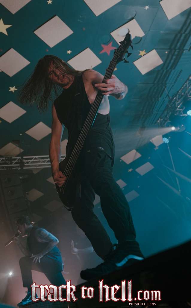 Cada breakdown fue un golpe directo al cuerpo. Donde otros grupos de apertura podrían diluirse en ruido, ellos demostraron control y oficio. En apenas siete canciones dejaron claro que no estaban ahí para “calentar”, sino para encender una mecha que ya nadie podría apagar.