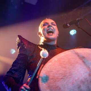 Eivør Pálsdóttir, la reconocida artista y anfitriona de este ritual, dio a conocer su talento con su primer disco llamado bajo su propio nombre en el año 2000, desde ahí llegando a 10 discos de solista, además de colaboraciones varias con otros artistas y para bandas sonoras, alcanzando hoy una fama reconocida por su hermosa voz, junto con su particular performance sobre el escenario, que sin dejar su dulzura nos da escalofriantes momentos ritualescos. Así, la cantante feroesa nos dio la bienvenida con Jarđartrá, título presente en su último lanzamiento Enn (2024) en una buena introducción a su propuesta, oscura pero bella. Salt, Gullspunnin, e Í Tokuni fueron las que dieron avance al show, entre tambores ritualescos otorgados por su interpretación del Bodhrán, sus característicos ruidos guturales acompañados de una coreografía que pareciera ser la antesala de un sacrificio, quizás, el de nuestra vida antes de ver el show. A continuación, la cantante hace mención a sus colaboraciones en la música de películas y series, como es el caso de una de las más famosas en las cuales ha participado con su increíble talento, siendo esta The Last Kingdom, de la cual todos quienes la vimos recordamos su banda sonora. En homenaje a esta serie, Eivør nos entrega Lívstræđrir, junto al tema central de The Last Kingdom, para luego interpretar Hymn 49, conectando a todos los fanáticos de la serie con su música y presencia sobre el escenario.