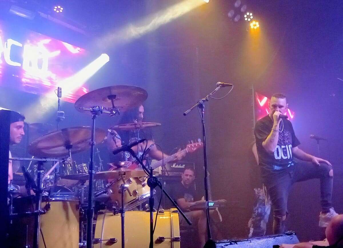 El segundo turno fue para Ocio, quinteto con base entre zona oeste y zona norte del conurbano bonaerense. Con una propuesta más cercana al metal alternativo y el apoyo de teclados, comenzaron con “De Gira”. Con “No Sé Quién Soy” mostraron una de sus facetas más sólidas, y el punto de mayor reacción llegó con el cover de “Killing in the Name” de Rage Against the Machine, coreado por el grueso del público. Luego pasaron por “La Ruleta”, una versión de “Aerials” de System of a Down y cerraron con “Rompiendo Cadenas”. Si bien el accionar fue correcto, tardaron en ganarse el reconocimiento de la gente.