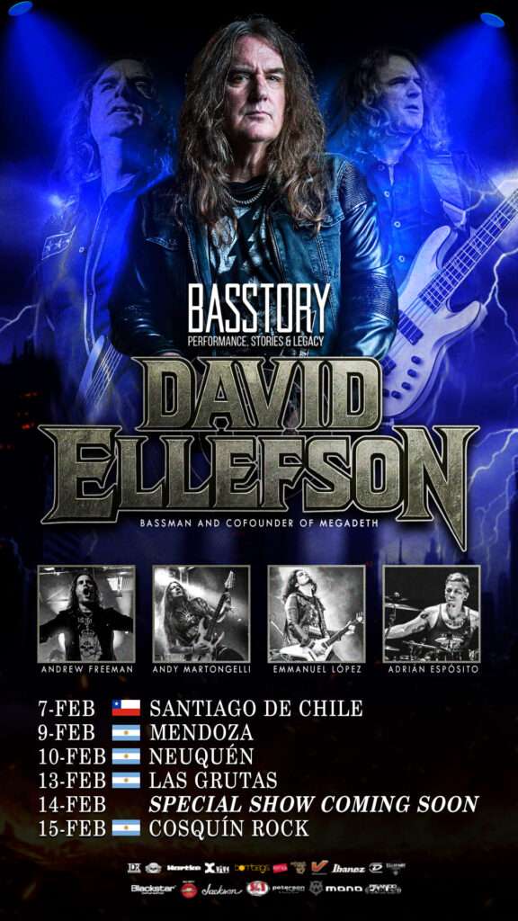 El bajista ganador del Grammy, David Ellefson trae su aclamado BASSTORY: Performance, Stories & Legacy tour a Latinoamérica,  una poderosa mezcla de actuación en vivo, narración y una mirada interior a los riffs, momentos y música que moldearon su vida dentro y fuera del escenario.