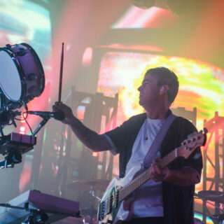 A las 20:45, las luces se apagaron y el rugido del público marcó la llegada de Enter Shikari al escenario. Con más de dos décadas de trayectoria, los británicos volvieron a demostrar por qué son una de las bandas más singulares del panorama alternativo. Abrieron con “Bloodshot” y desde ese momento el Razzmatazz se convirtió en una olla a presión. La energía de la banda era contagiosa, combinando post-hardcore, drum ‘n’ bass y rock electrónico sin perder su sello único.