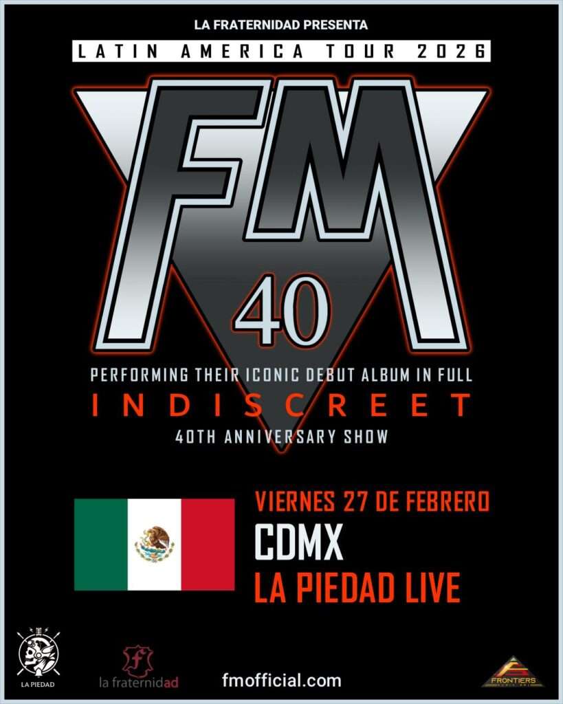 Los británicos de hard rock melódico FM, visitarán por primera vez México en su Latin America Tour 2026, en donde se tocarán todo su primer disco “Indiscreet” de principio a fin, ya que estarán celebrando sus 40 años del lanzamiento.
