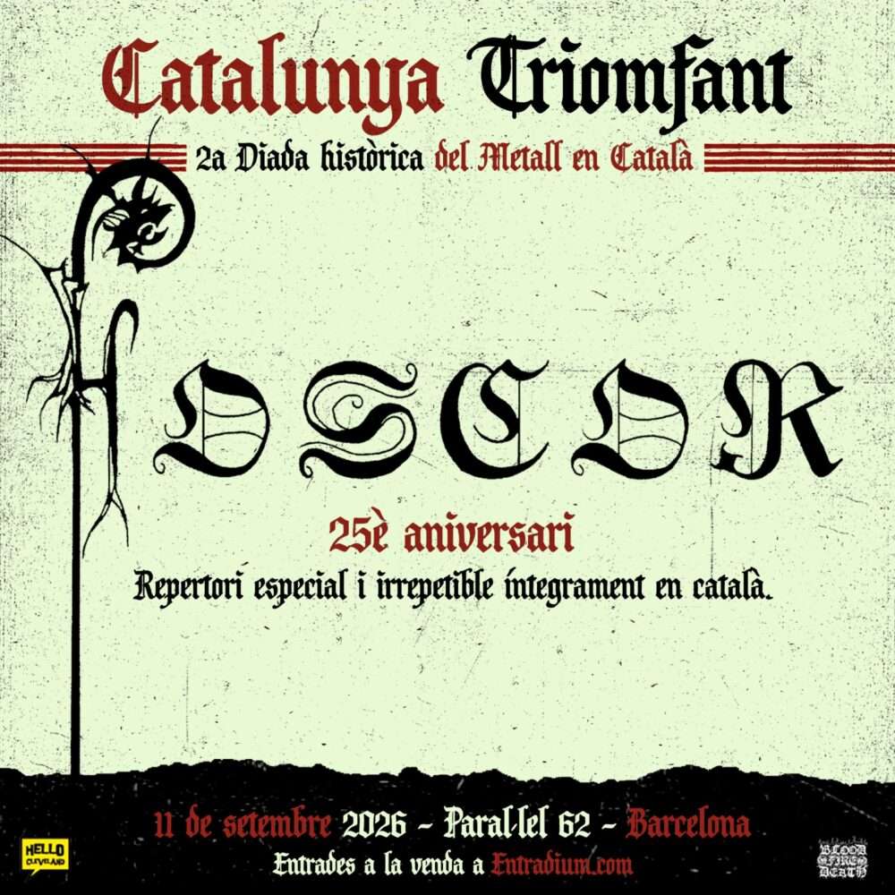 Tras el éxito de su primera edición, el Catalunya Triomfant volverá el próximo año con su segundo asalto y para ir calentando motores ya han confirmado que Foscor serán los cabezas de cartel con su potente y escalofriante sonido, siendo una de las bandas referentes dentro del metal extremo en nuestro país.