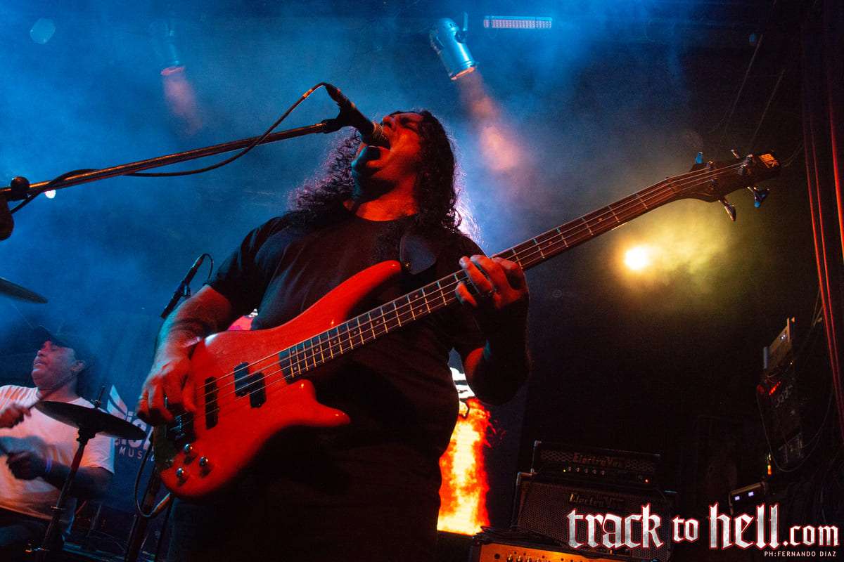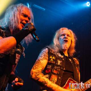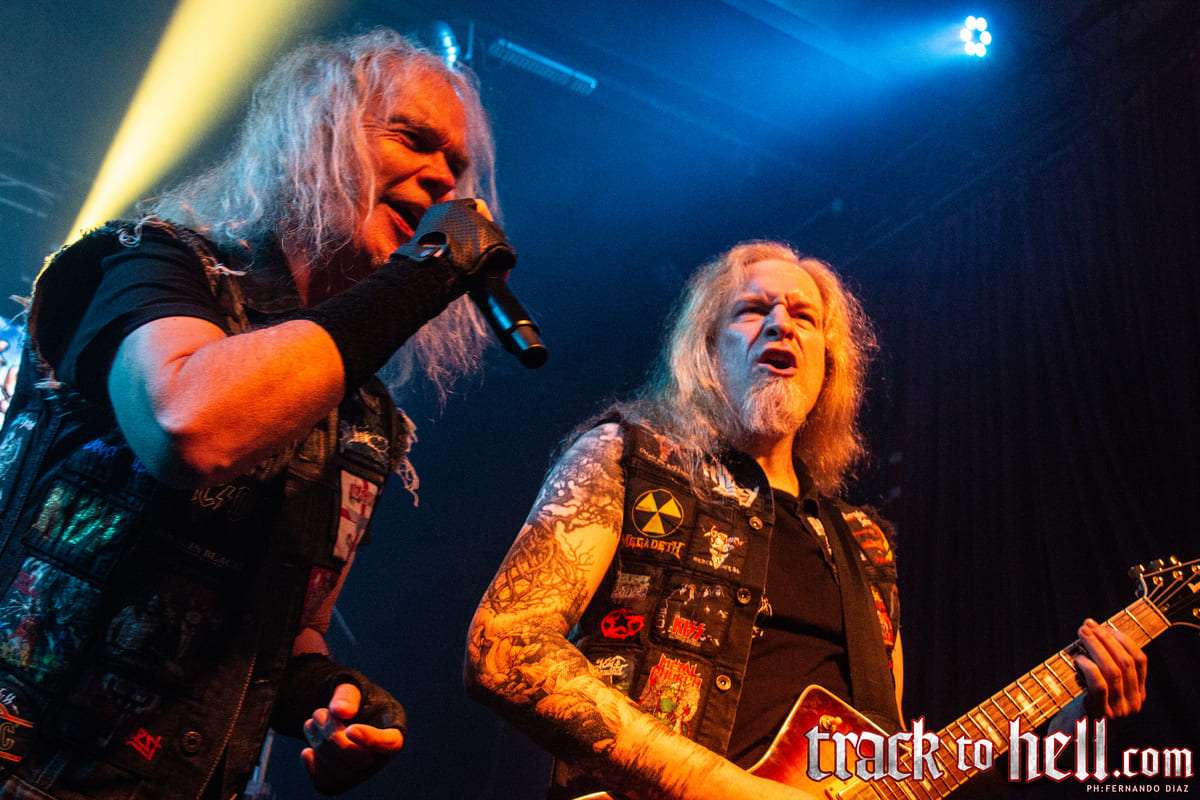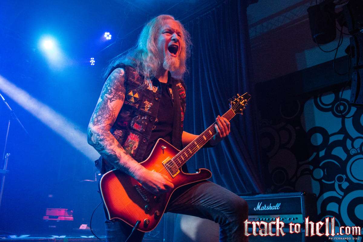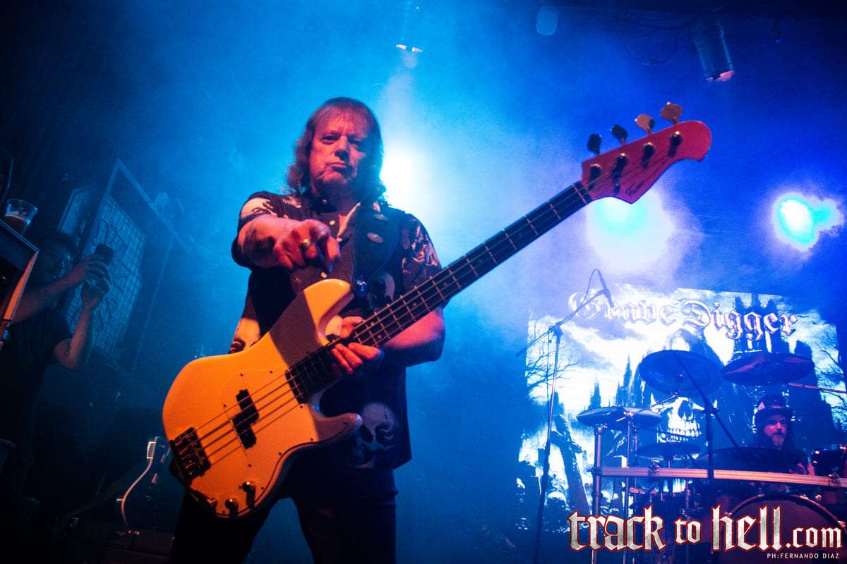 No será una canción muy rápida, pero el doble bombo de la batería, esos riffs clásicos bien filosos y la voz ruda y ronca de Boltendahl, su marca registrada, hicieron que la noche se prendiera de lleno desde la primera canción. Seguida por la hardrockera, casi AC/DC, “The Grave Dancer”, procedente de Heart of Darkness, ambas fueron suficientes para tener al público cantando y pogueando en el Teatrito. Las cosas se aceleraron con “Kingdom of Skulls”, una de un par que saldrían de Bone Collector y que tuvo gran respuesta al golpeteo de su batería.