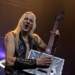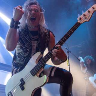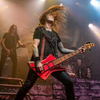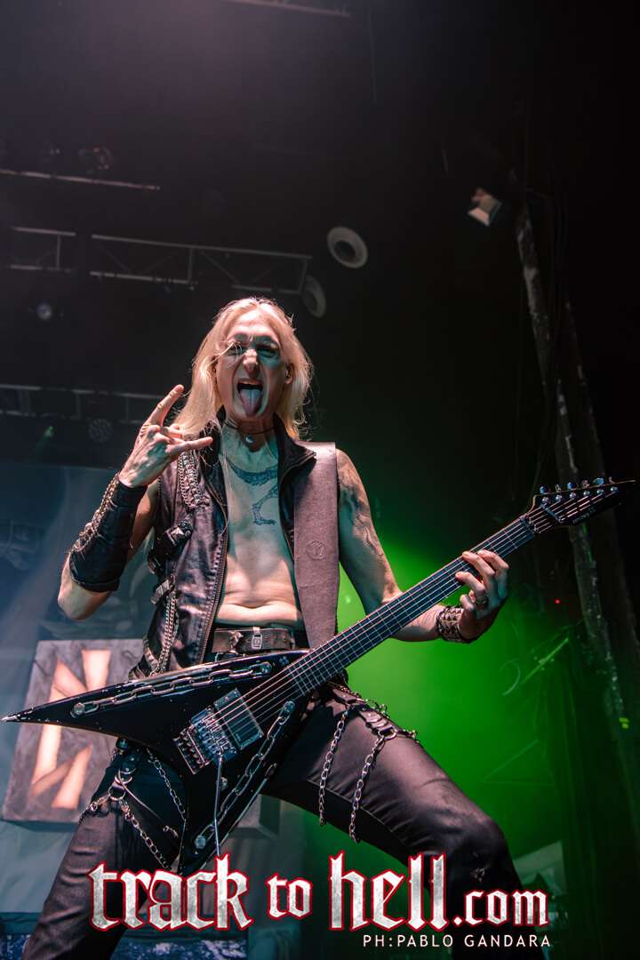 Las guitarras construían un muro de sonido sólido y agresivo. La sustitución temporal de Rhea Thompson por Jara Solís no se percibió como una carencia, sino como una adaptación natural: Jara se movía con seguridad, aportando fuerza y precisión, encajando sin fisuras en el engranaje junto a Zach Salvini, que descargaba solos con carácter clásico y pulso moderno. Todo estaba bien medido, bien ejecutado, sin perder crudeza.