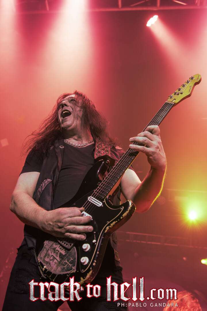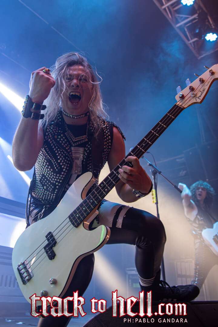 Con “White Death” y “Shadows of War”, la banda terminó de conquistar a un público que ya empezaba a responder con cabezas agitándose y puños en alto. El bajo de Thomas “Bones” Hewson retumbaba como una columna vertebral inquebrantable, mientras Eddie Mariotti sostenía el conjunto desde la batería con una pegada constante, sin excesos, pero sin concesiones.