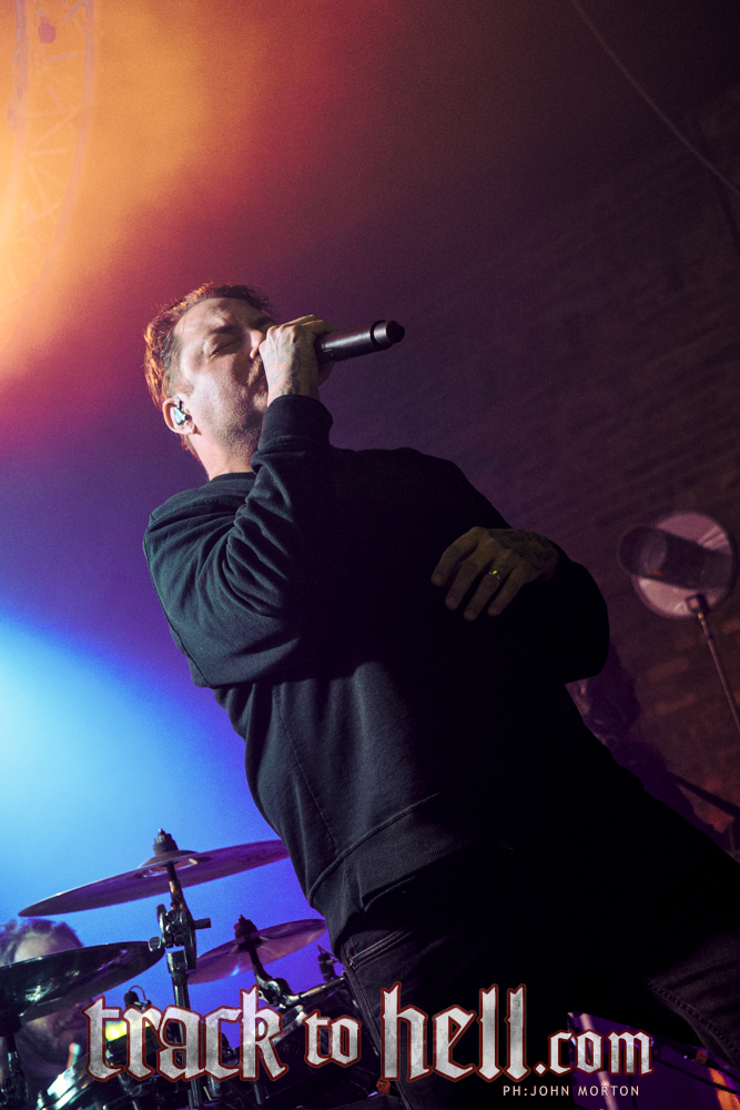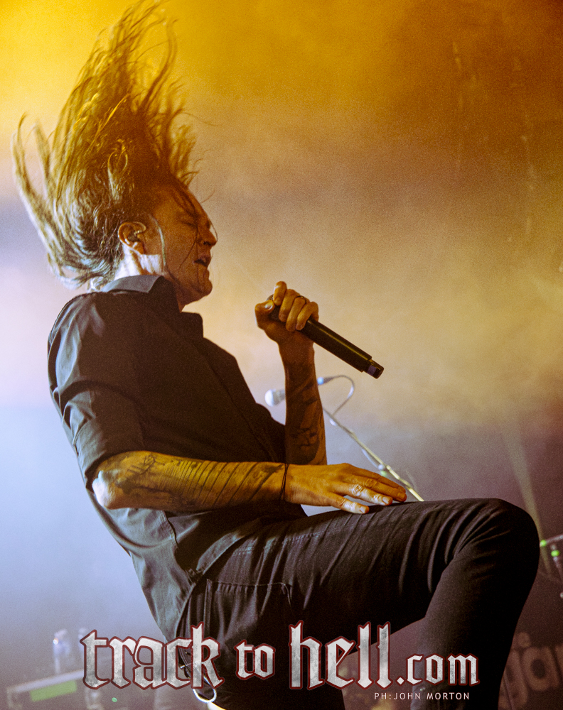 La interacción entre el vocalista y el público suele ser lo que convierte un buen concierto en uno memorable, especialmente en salas pequeñas como The Garage. Fue genial ver a Eschbach relacionarse con el público de manera cercana y entretenida, con una pequeña pausa entre “A Vulgar Picture” y “Mammoth Hand”, ambos temas de su álbum más reciente Servitude, durante la cual sonó un breve pasaje de smooth jazz mientras agradecía al público y comentaba cuánto tiempo había pasado desde su última visita a Glasgow. También expresó lo emocionados que estaban de volver junto a Heaven Shall Burn.