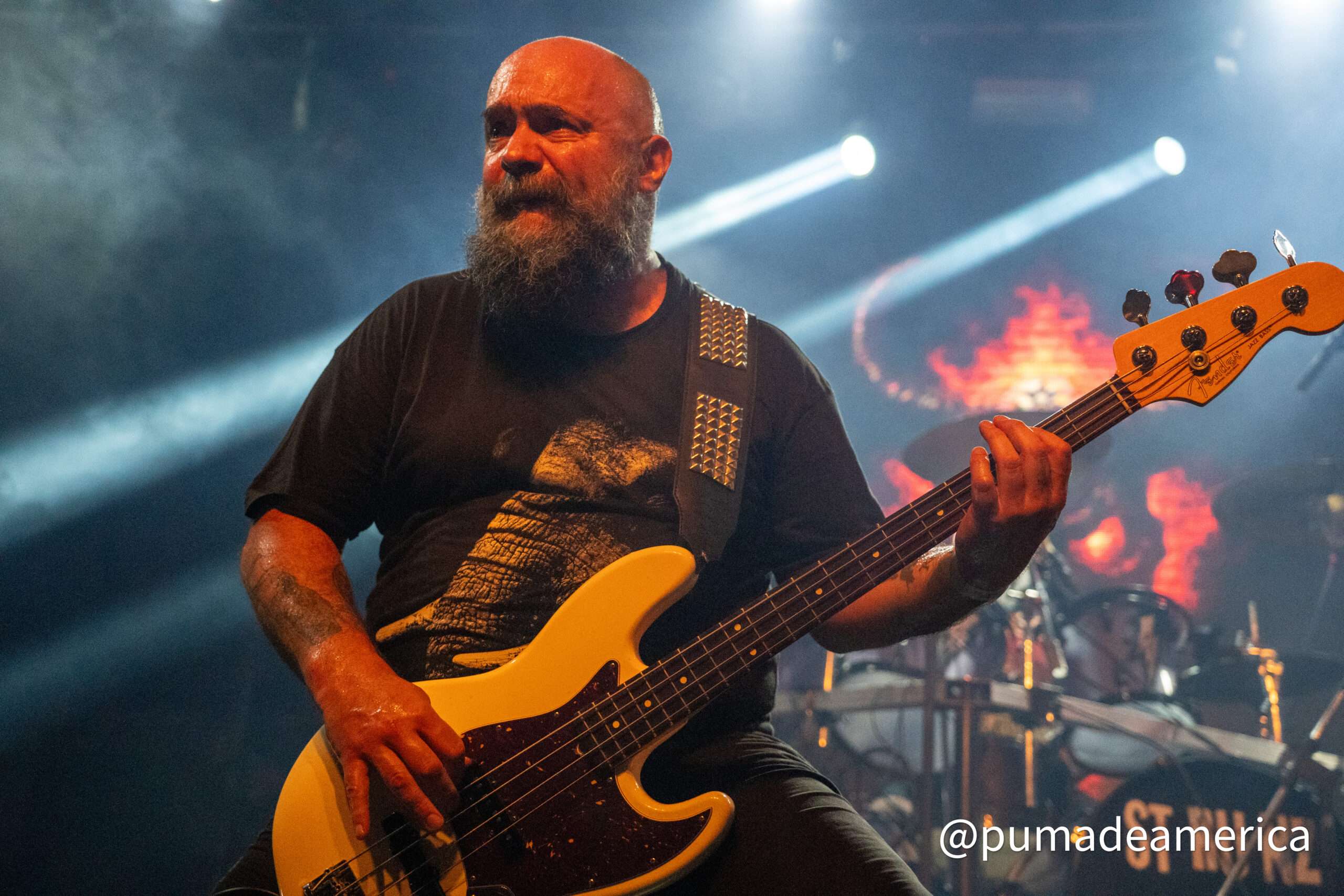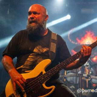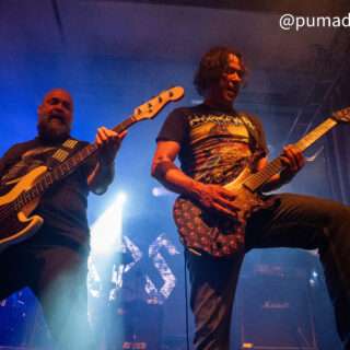 El show reanudó su marcha con “Traición”, “Victimas del Vaciamiento” y “Gil Trabajador”, es decir, repasando canciones de todo el catálogo de Hermética. Y hay dos elementos que sobresalen de esta nueva agrupación. El primero es Niko García en voces, que acertadamente no busca imitar a Claudio o a Ricardo, sino que cuenta con una impronta propia. Algunos señalaron un registro cercano al Chizzo de La Renga (recordemos que Niko integra también un tributo a aquella banda); pero para recrear las canciones de Hermética encuentra un punto justo que le sienta a la perfección y dota de personalidad a esta propuesta. Además, su despliegue como frontman es impecable. Me gustaría verlo en un escenario más amplio.