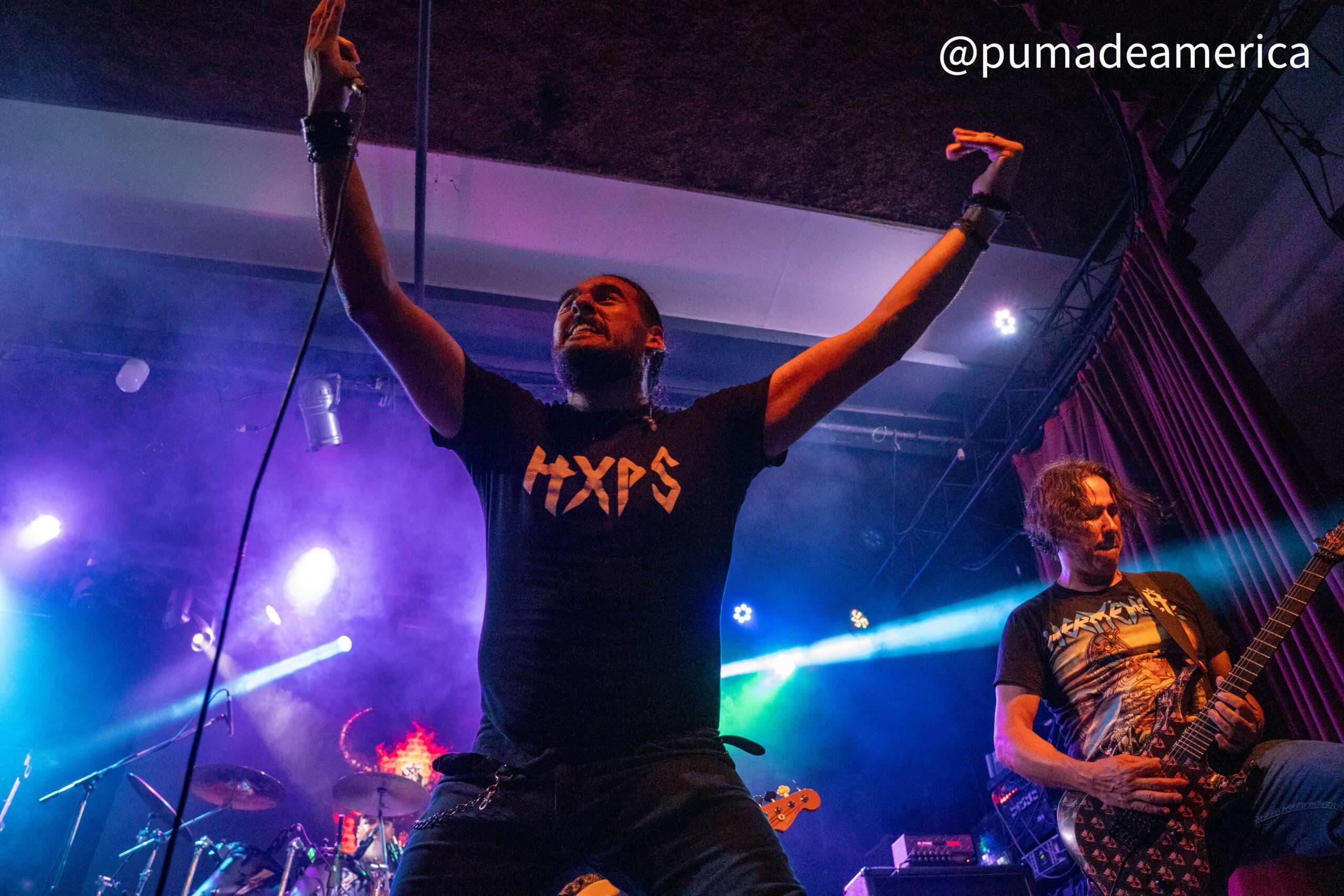Alcancé a ver el show de KIRÓN, trio de Heavy Metal oriundo de Moreno, que abrió su set con “Bark at the Moon” de Ozzy en una original versión en castellano. Luego repasaron canciones de su trayectoria como “El Camino o Mentes Enfermas” y hubo un momento de homenaje para Dimebag Darrell con el tema “Diamante”. Consistente y certera presentación que recibió los merecidos aplausos por parte de un público que ya era numeroso.