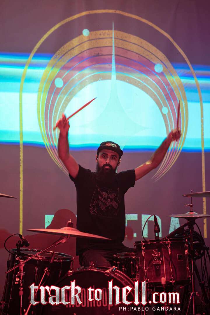 La música fluyó como una corriente cristalina y feroz; en “Mask”, riffs afilados como obsidiana convivieron con pasajes atmosféricos donde el espíritu de Cynic y Opeth parecía danzar en un rito de purificación. Cada golpe de Raúl Payán fue geometría sagrada en movimiento, mientras Marc Contel y Alexander Nuñez se integraban como raíces que por fin encuentran su tierra.