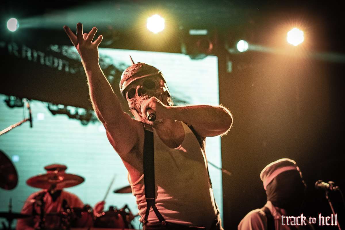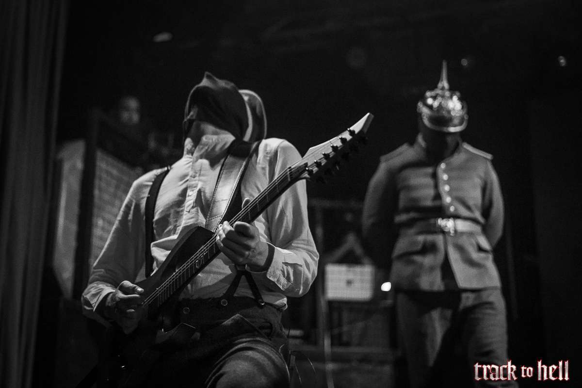 Así fue pasando la noche, con Noise volviendo a su uniforme de oficial y más canciones que nos llevaban a diferentes escenarios de “la guerra que terminaría con todas las guerras”, con la imagen de un zeppelin de fondo con el nombre de la banda. “Z-Vor!” y las batallas marítimas, “Der Maulwurf” y el tener que andar trabajando en las minas, “Panzerhenker” y sus soldados especializados en destruir tanques, “Die Havarie” y el horrible escenario de estar atrapado en un submarino, donde además pudimos ver a Noise usando un redoblante para acompañar la intro. Un viaje a través de la historia de la guerra en música, con unas guitarras que aplastaban todo a su paso con sus riffs.