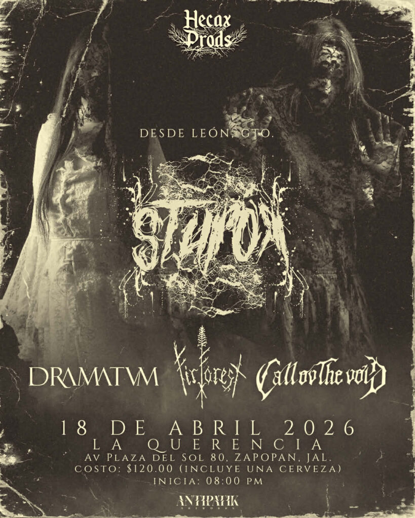 La banda de depressive black metal originaria de la ciudad de León, Guanajuato Stupor regresará a la Zona Metropolitana de Guadalajara, más precisamente al municipio de Zapopan, este próximo sábado 18 de abril en La Querencia (Av. Plaza del Sol #80) junto a imponente apoyo local.