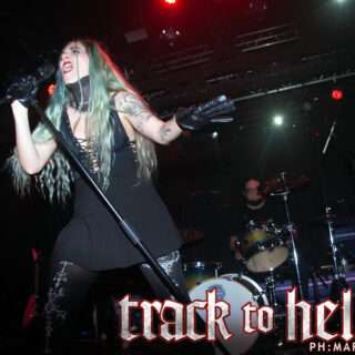 Sin pausa real, “Darkest Times” profundizó en ese clima introspectivo. El tema funcionó como una bajada a terrenos más emocionales, apoyado en una interpretación vocal especialmente intensa de Clau Violette, que alternó melodías cargadas de fragilidad con guturales contenidos pero afilados. Aquí la banda mostró su capacidad para manejar la melancolía sin perder tensión, sosteniendo el peso emocional del tema con una base rítmica sólida y envolvente.