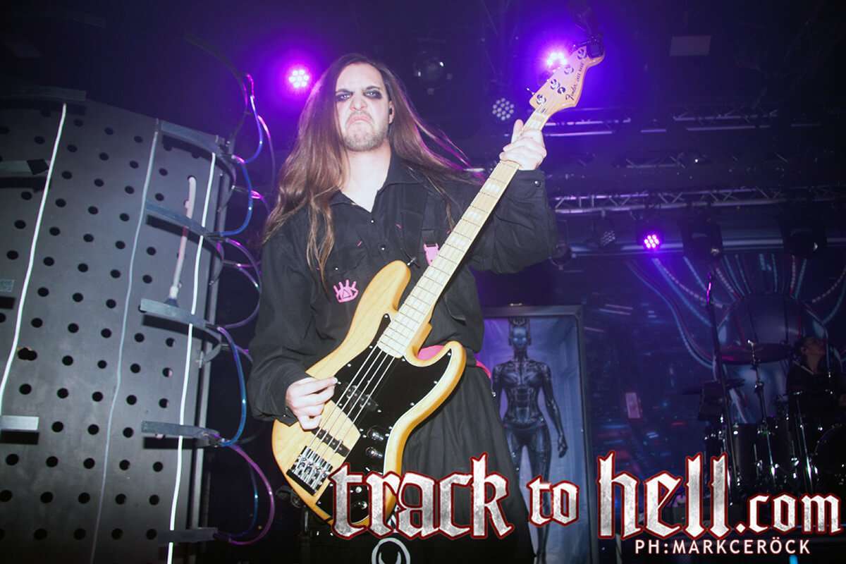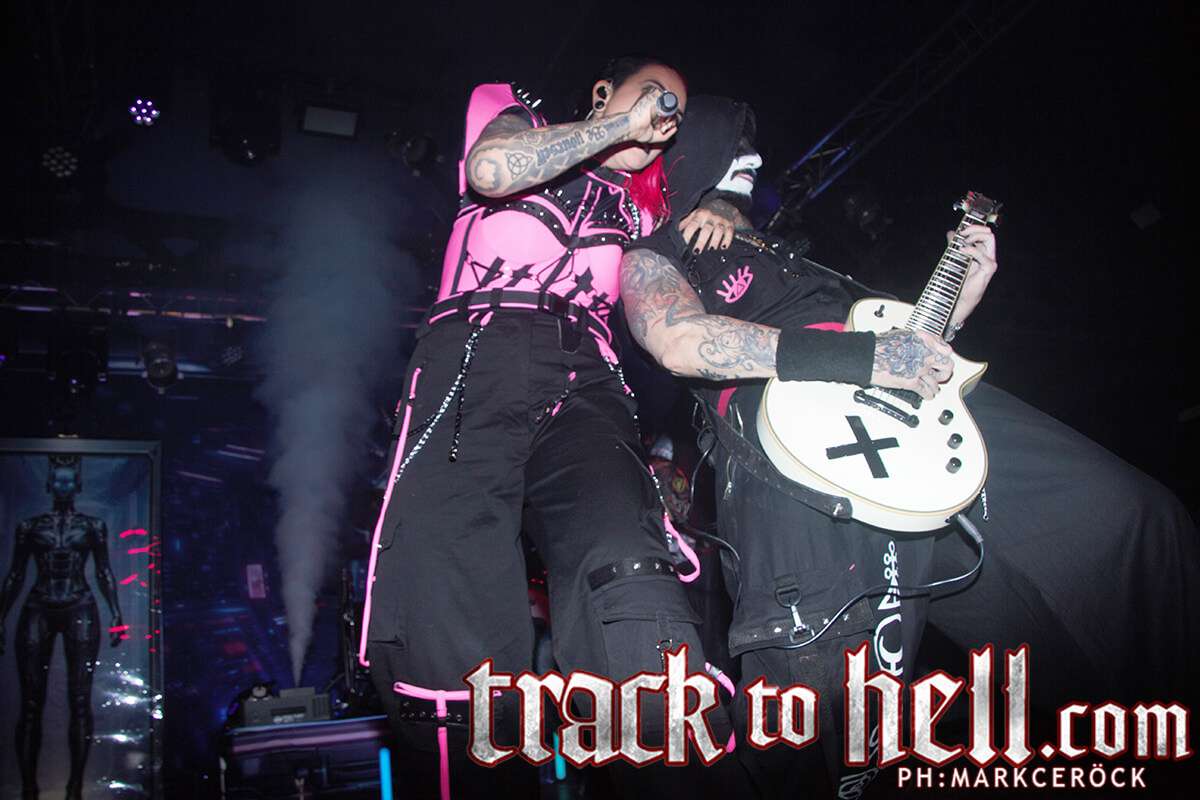 El giro llegó con “Synthetic Heart”, donde la estética industrial y la frialdad tecnológica se impusieron claramente. Las guitarras de Joan “Vena” Moreno combinaron riffs precisos con pasajes más etéreos, mientras el bajo de Umbra Hatzler aportó una profundidad oscura que se sentía físicamente en el pecho. La sensación de deshumanización que transmite el tema se trasladó al directo con total eficacia, reforzada por una iluminación fría y mecánica.