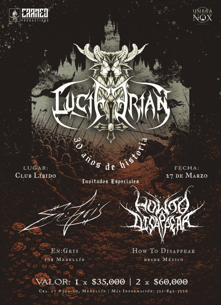 El negro metal de perdición se encuentra de manteles largos en Medellín ya que este viernes 27 de septiembre por fin volverá la bestia pionera del género en Colombia, Luciferian, acompañado de un par de invitados más que de lujo, con EnGris, oriundos de la capital antioqueña y How To Disappear, originarios de Torreón, México.