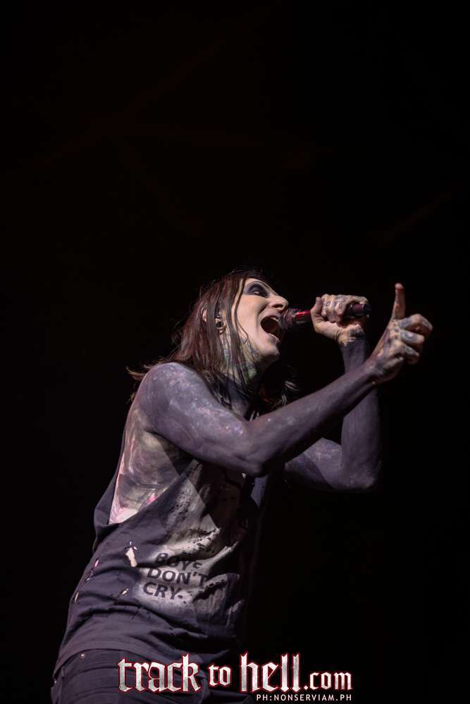 En cuanto arrancan, la energía del público se multiplica por diez, con el vocalista Chris “Motionless” Cerulli captando la atención de todos desde el primer momento. La banda funciona a pleno rendimiento, con guitarras contundentes y teclados de aire industrial sosteniendo las potentes voces limpias y gritadas de Chris.