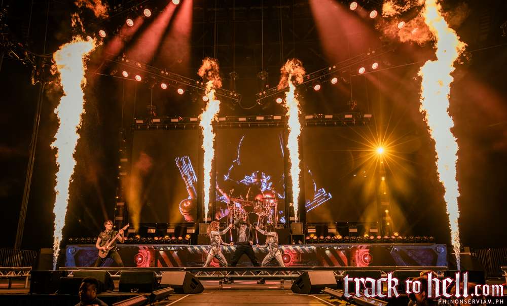 El grupo agradece poder traer por fin al Reino Unido una producción del mismo nivel que en su país, algo que el público celebra. La banda ofrece el espectáculo en vivo que siempre soñó presentar aquí. Las pantallas muestran homenajes cinematográficos y visuales que acompañan la temática de las letras, mientras que la pirotecnia y los bailarines aportan un extra de espectáculo.