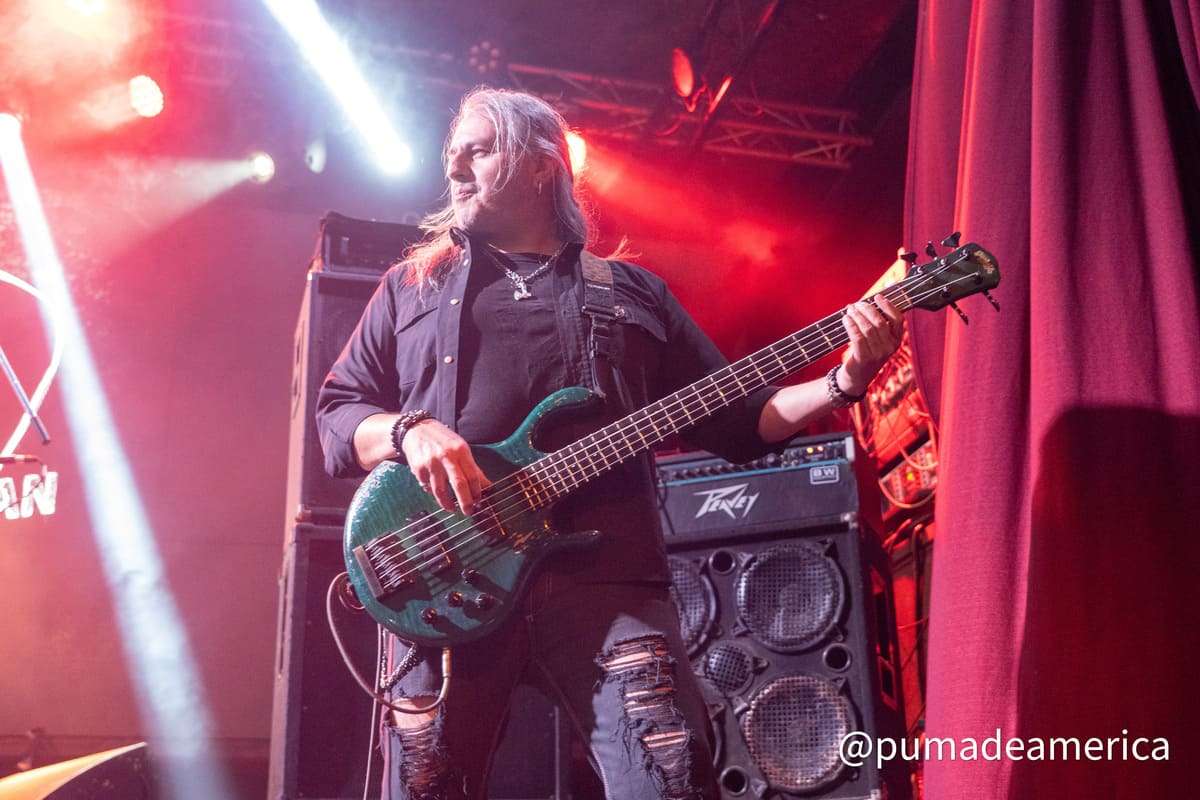 El siguiente turno fue para Freedomlost, banda de hard rock de la vieja escuela, formados en plena pandemia, con mucha atención a los detalles y de elaboradas composiciones. Quinteto integrado por Mariano Bunge en voces que mostró un gran despliegue como frontman; Nelson Derfler en el bajo, con una imagen propia del género y también destacado como showman por ej. cuando bajó al sector del público; Oscar Córdoba en guitarra; y desde el fondo Last Wid en teclados y Javier Demasy en batería. Tuve la oportunidad de verlos hace un par de años cuando abrieron para Glenn Hughes y había quedado con ganas de más. En esta velada ejecutaron algunas canciones propias como “Take me to the Top”, “Shooter” o “Waiting on your Love”; alternaron algún un cover como la festejada “Living After Midnight” de Judas Priest y cerraron con una atinada versión de “Summer of 69” de Bryan Adams, dejando todo listo para…