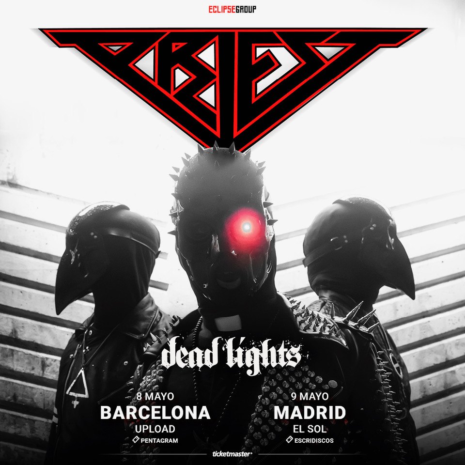 El misterioso proyecto Priest, formado por Mercury y Salt, ex-miembros de Ghost y al cual se sumó Sulfur en los teclados y las programaciones, está a muy poquitos días de volver a España para presentar su particular propuesta donde conviven el rock, la electrónica oscura, toques de Sci-Fi y una pizca de synthwave.