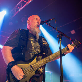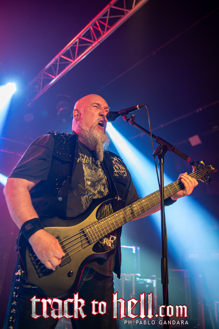 Peavy Wagner se erigió como eje absoluto del concierto. No solo por su papel como bajista y vocalista, sino por su capacidad para dirigir emocionalmente el show. Sus intervenciones entre canciones, breves pero sinceras, reforzaron la conexión con el público. Su voz, lejos de mostrar desgaste, mantiene ese carácter rasgado que añade personalidad a cada interpretación.