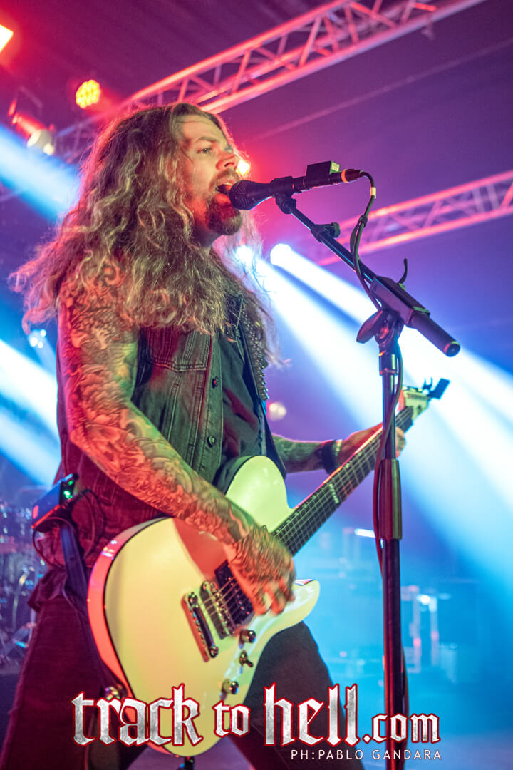 Sin dar respiro, encadenaron “Unleash the Demon”. Aquí, la sección rítmica —Rayne y Zacharias— ofreció una lección de contundencia: el doble bombo retumbaba en los cimientos de la sala, creando una atmósfera opresiva y adictiva. La guitarra de Mashl J. brilló con riffs afilados que cortaban el aire, tendiendo un puente perfecto entre el metal moderno y las raíces clásicas del género.