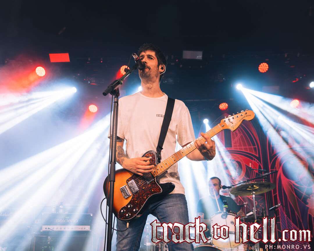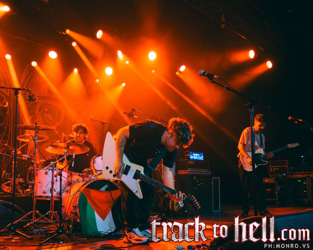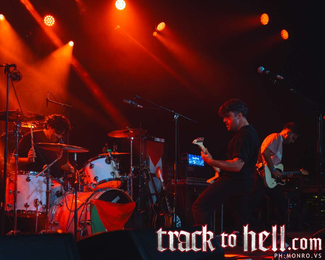 A las 20:35 comenzaron los canarios Ella La Rabia, una de las propuestas más singulares del panorama estatal. La sala todavía no estaba llena, pero el cuarteto no se dejó intimidar. Con su mezcla de post-hardcore y folclore canario, demostraron que el riesgo sigue teniendo sentido en la música pesada. Canciones como “Yrune”, “Valenta”, “Ella la Rabia” o “MMXX” sonaron como himnos volcánicos, cargados de una emotividad que va más allá del ruido. Su disco: Canción de Cuna Oceánica (2022), ha sido una bocanada de aire fresco, un homenaje a la tierra, a las raíces, a la identidad. En directo, esa fusión se multiplica: guitarras afiladas, voces que se quiebran, percusiones que parecen emerger del océano. Los pocos que estaban presentes lo entendieron, y los que llegaron tarde, se lo perdieron.