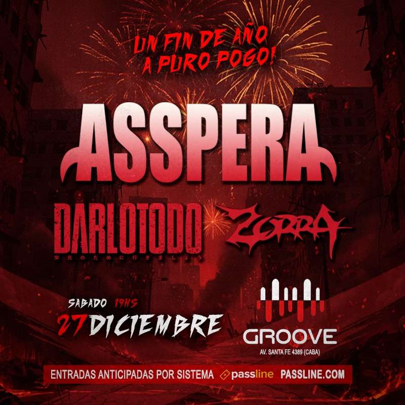 Tenemos despedida del 2025 confirmada y como siempre en Groove se estarán presentando nada más y nada menos que Asspera junto a Zorra y los monstruos de Darlotodo, un lujon!