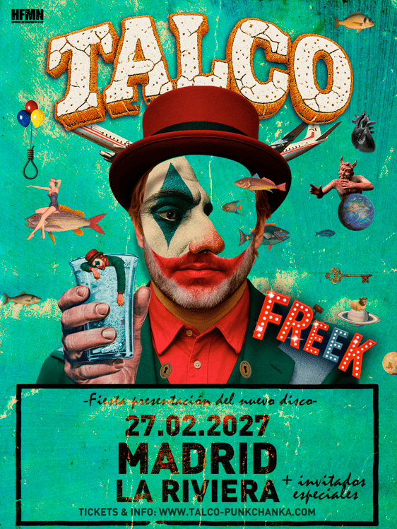 𝐓𝐀𝐋𝐂𝐎 llega a La Riviera el próximo 27 de febrero de 2027 para presentar 𝐅𝐑𝐄𝐄𝐊, un viaje salvaje entre sueños atrapados y jaulas mentales. Prepárate para perderte en la mente del bufón que todos llevamos dentro. ENTRADAS YA A LA VENTA