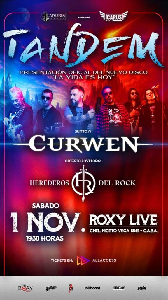 Tandem regresa a Palermo, con su Hard Rock dinámico y melódico, que predomina en su nuevo album “La Vida Es Hoy“, editado por el sello discográfico Icarus Music.