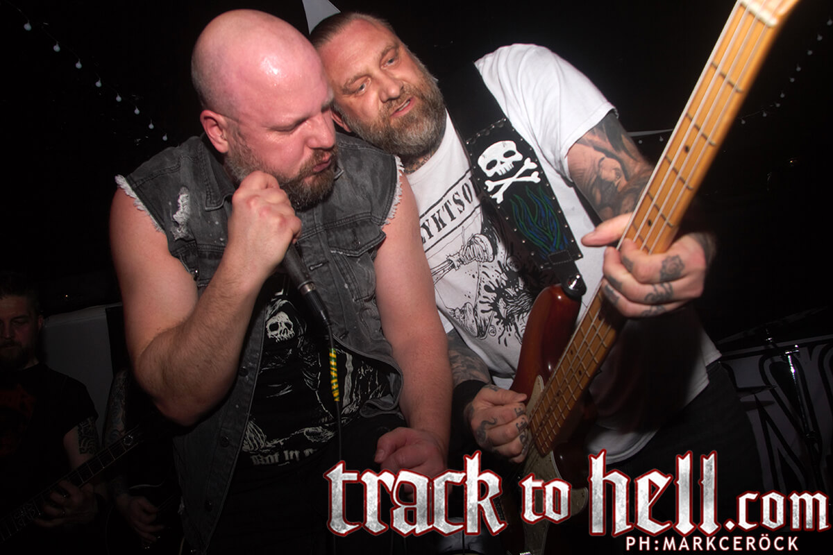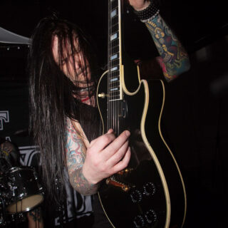 El despliegue de Mattias Rasmussen al bajo aportaba esa mugre punk y crust que siempre ha diferenciado a esta banda del sonido más pulido de Göteborg. Su forma de tocar no era solo una base rítmica; era una capa de suciedad sonora que daba profundidad al conjunto, un rugido grave que se sentía en las vibraciones del suelo y en las costillas de quienes estábamos pegados al escenario.