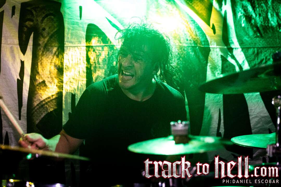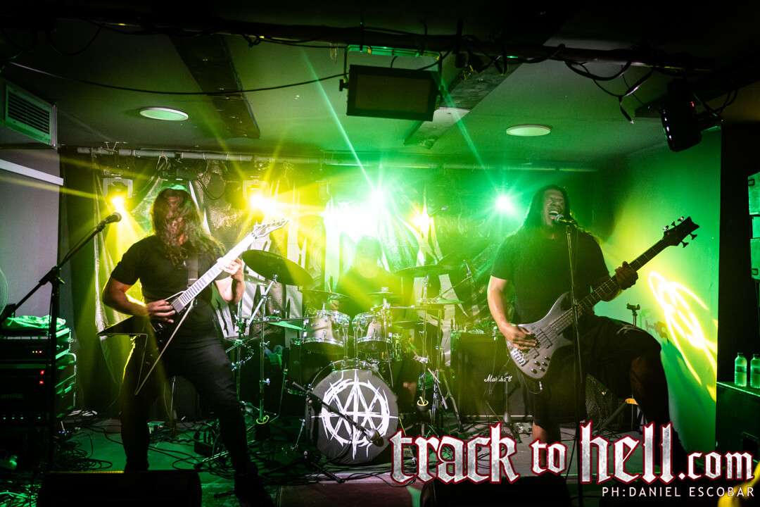 Los primeros en romper el silencio fueron Burial Ruthless, banda venezolana de Groove/Tech-Death nacida en Maturín y actualmente establecida en Barcelona, que transformó el escenario en un auténtico campo de batalla. Su mezcla de death metal técnico y groove, con tintes de deathcore, afilada y precisa, golpeó como un mazo desde el primer segundo. En temas como “Blackheart”, el público se compactó frente al escenario, contagiado por una rabia que se siente más que se escucha. Pero fue “National Autopsy” la que terminó de prender la mecha: un grito por la libertad de Venezuela, escupido con la furia de quien carga años de frustración y resistencia. Victor no necesitó discursos; bastaba con ver su mirada y la tensión en su cuerpo para comprender y reivindicar el dolor real que su nación padece.