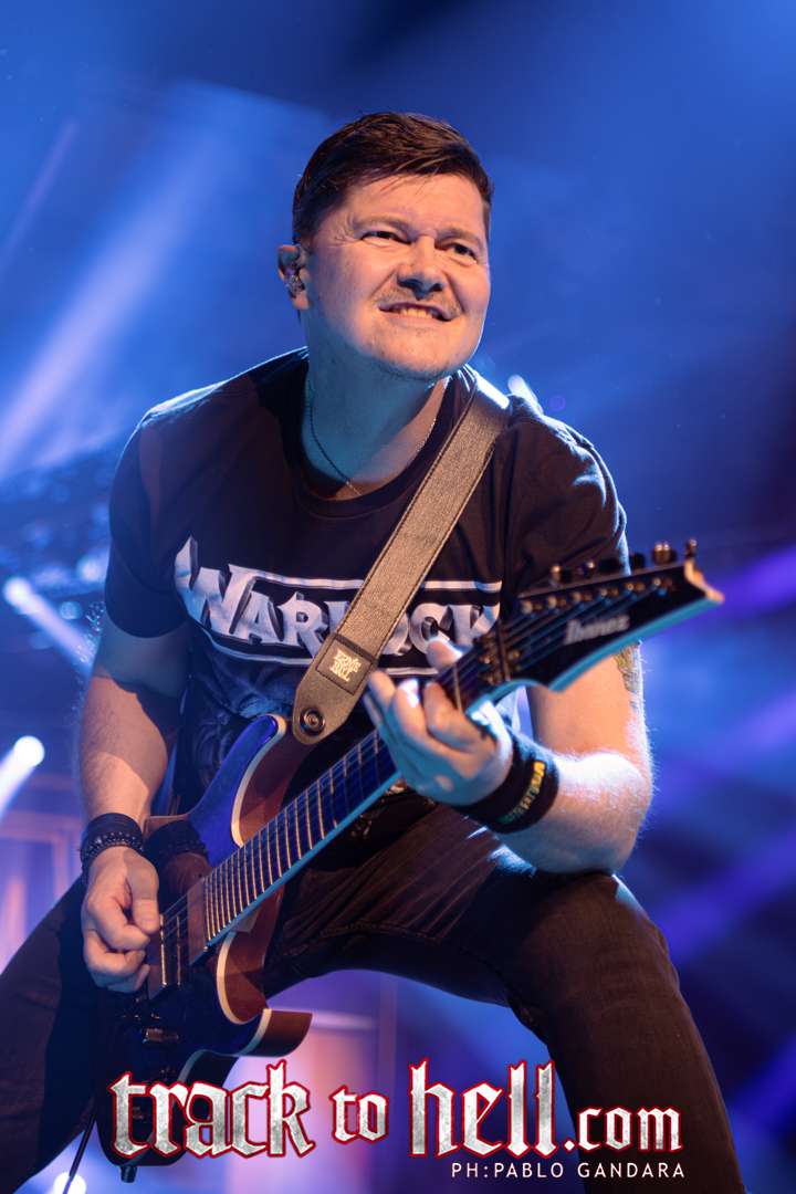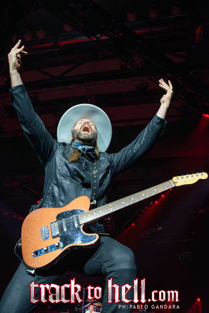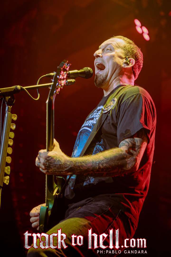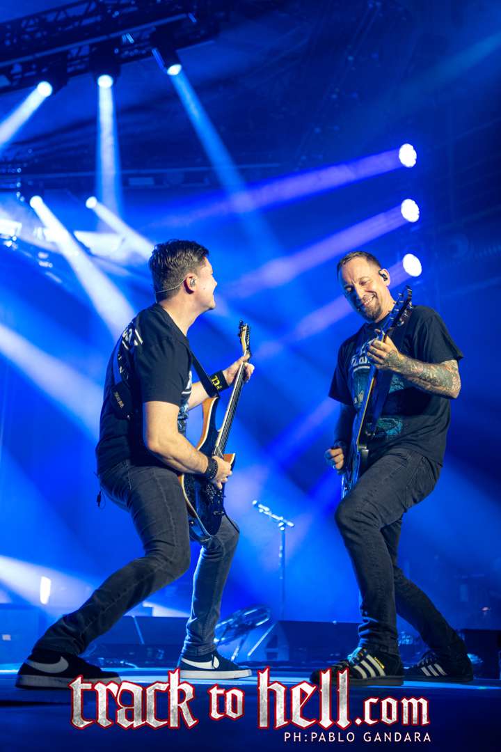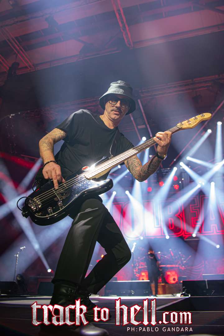 Cuando llegó el turno de Volbeat, el recinto se vino abajo. Los daneses no tardaron en imponer su estilo: guitarras afiladas, melodías irresistibles y una puesta en escena tan cuidada como efectiva. “The Devil’s Bleeding Crown” abrió la descarga y, a partir de ahí, el público fue parte del espectáculo. Michael Poulsen, carismático como pocos, se mostró cercano, simpático y con ese punto de humor que lo convierte en un líder natural. Entre canción y canción compartió bromas, dedicaciones y frases que arrancaron sonrisas, especialmente cuando presentó “Sad Man’s Tongue” con su guiño a Johnny Cash o dedicó “Fallen” a su padre.
