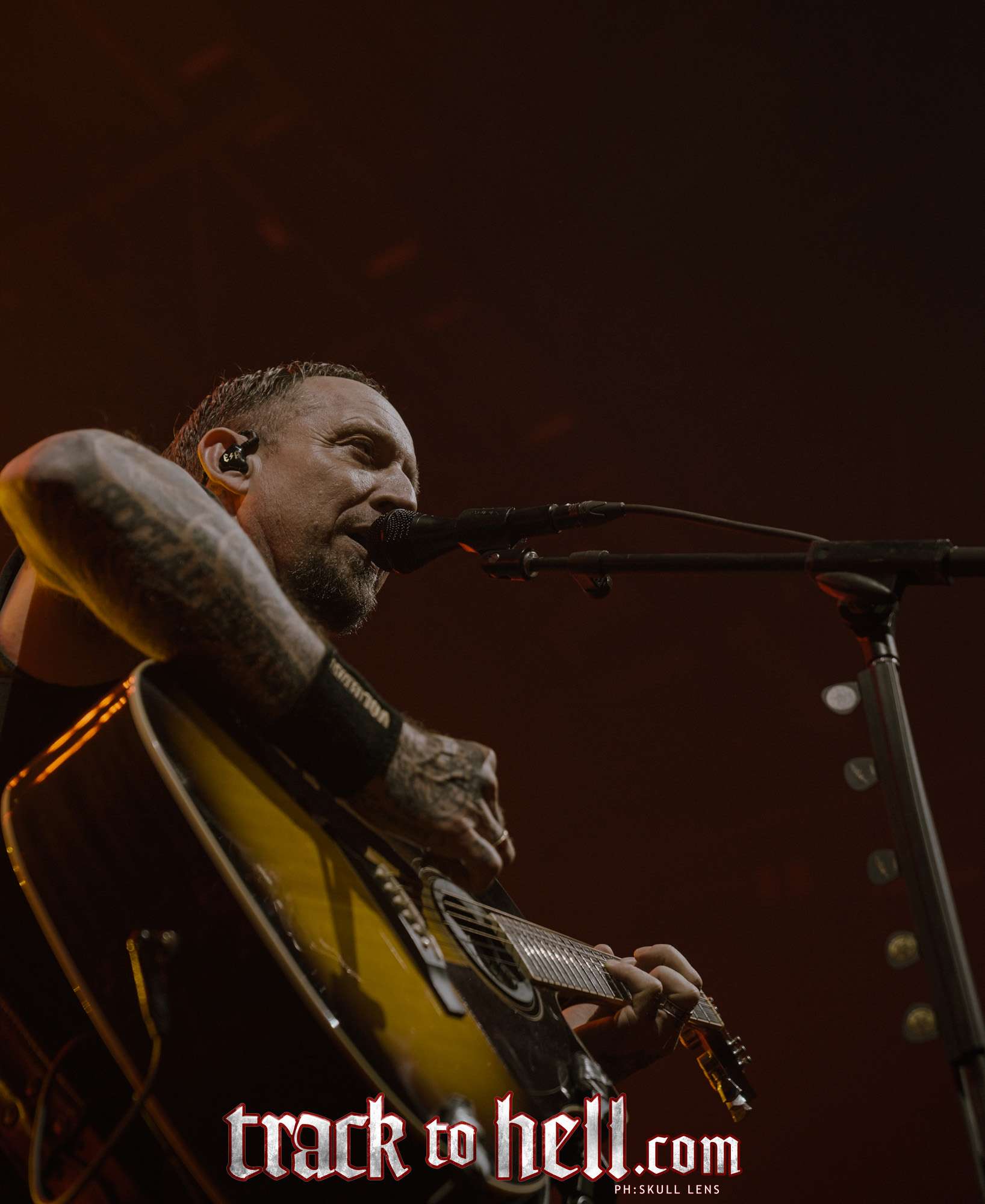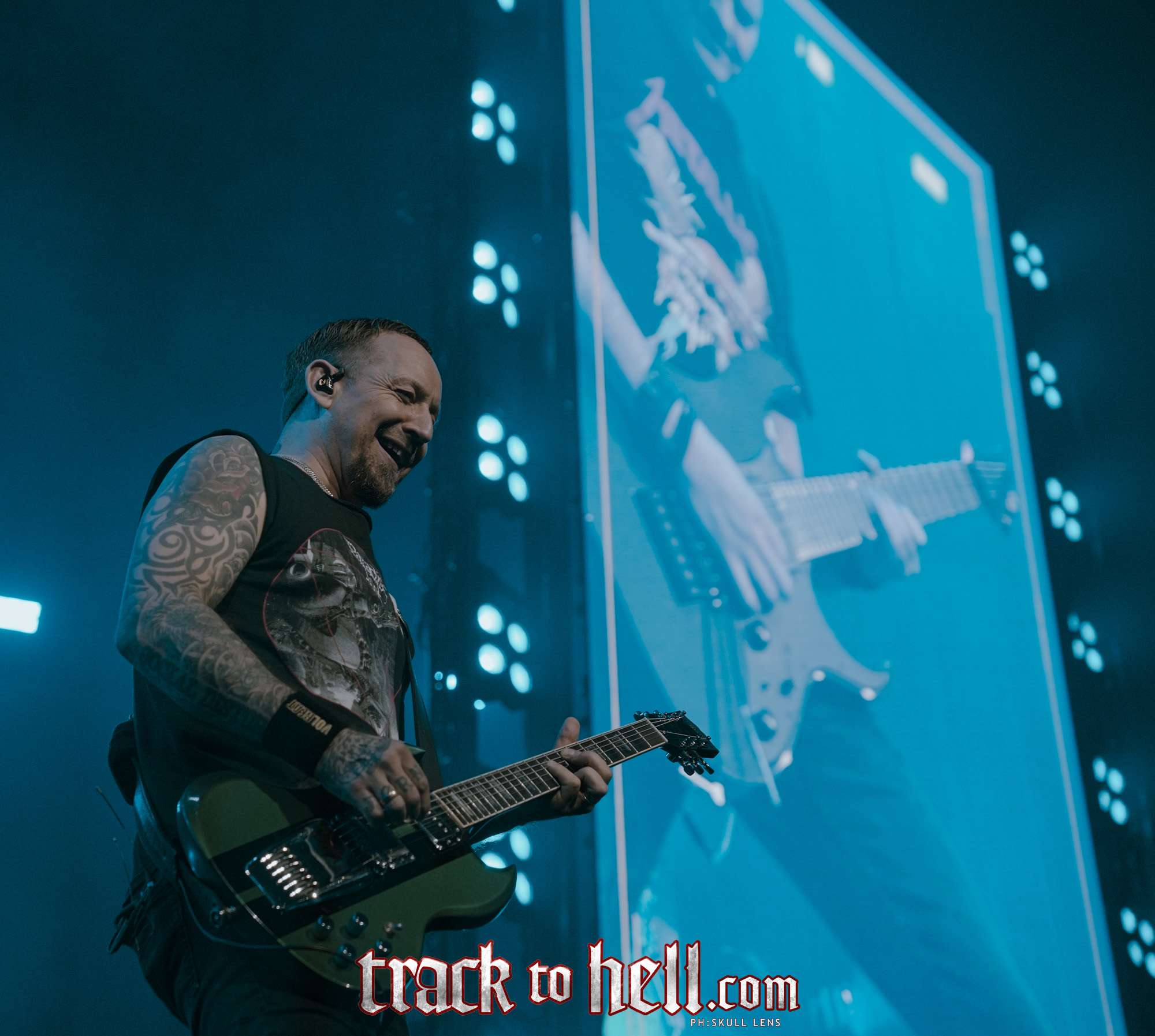 Si Bush calentó al público con corazón y aspereza, Volbeat arrancó el techo del lugar con su típica mezcla de espectáculo rockabilly y arrogancia metálica. Desde el momento en que “The Devil’s Bleeding Crown” explotó en el Hydro, la banda tuvo a Glasgow comiendo de su mano.