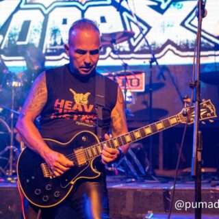 Tal como habían anunciado desde las redes sociales, ibamos a poder ver varios invitados. El primer turno fue para la guitarrista de La Plata, Valeria Terraz. Gran performance para dar vida al clásico de Hemética “Atravesando Todo Límite”, aunque en una versión más cercana a la que solía ejecutar Almafuerte. Valeria se retiró muy aplaudida y dio paso a otro invitado, esta vez en los teclados. Fue el turno de Gabriel Fajardo de Tándem, quien se acopló para una versión de “Estigmas”, perteneciente a La Oscuridad, el segundo LP.
